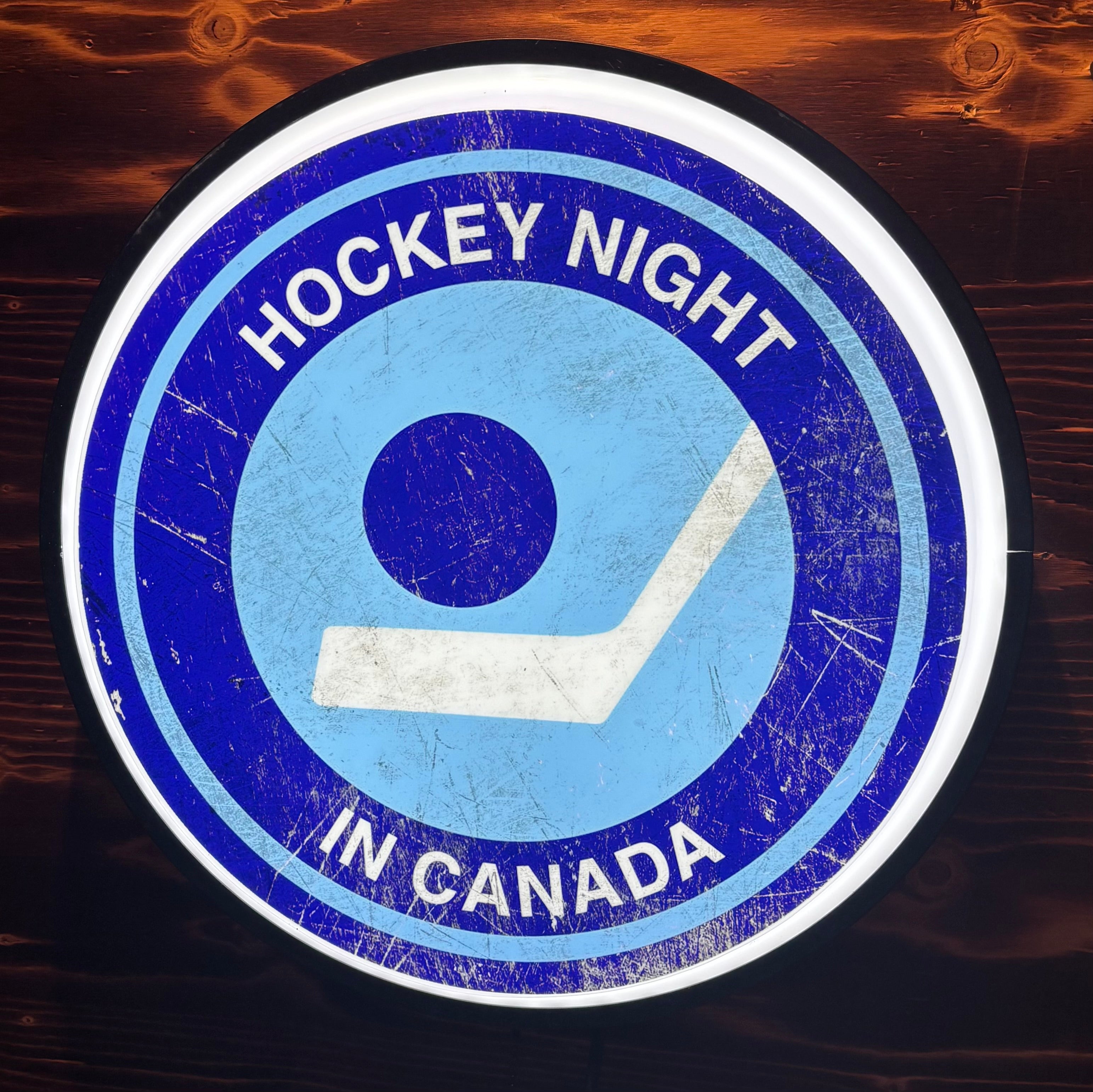 Get The Conversation Started With This Vintage Hockey Night In Canada Backlit Button Sign With High Intensity Led Lighting And Toggle Switch On-Off Controls. It’s All Metal With An Acrylic Globe. Measures 18" Side To Side And 3.5" High. A Fantastic Feel Good Collectable For Any Old School Hockey Fan!