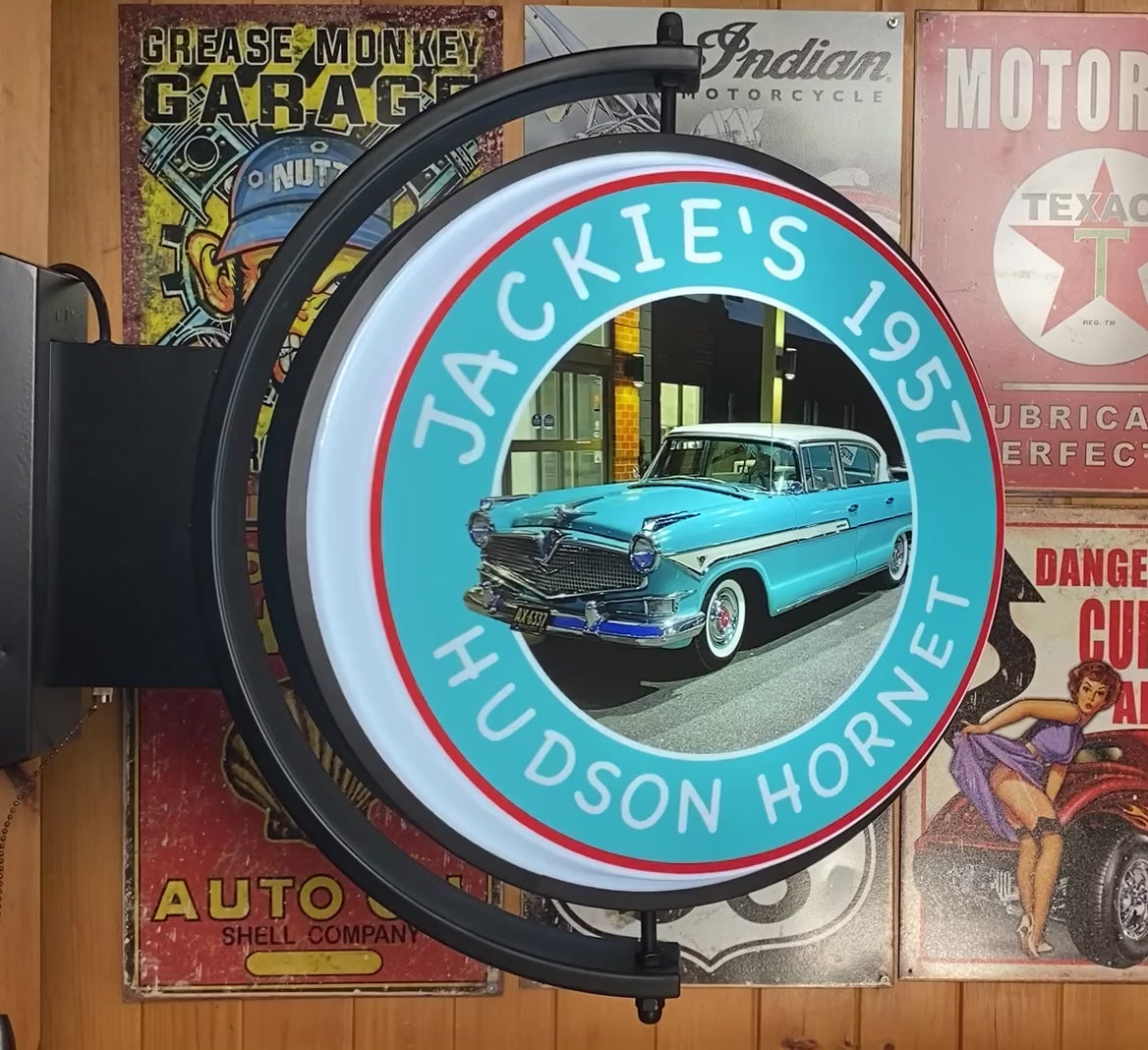 Jackie’s 1957 Hudson Hornet Custom Designed 24” Rotating LED Sign With Toggle Switch Controls