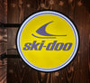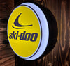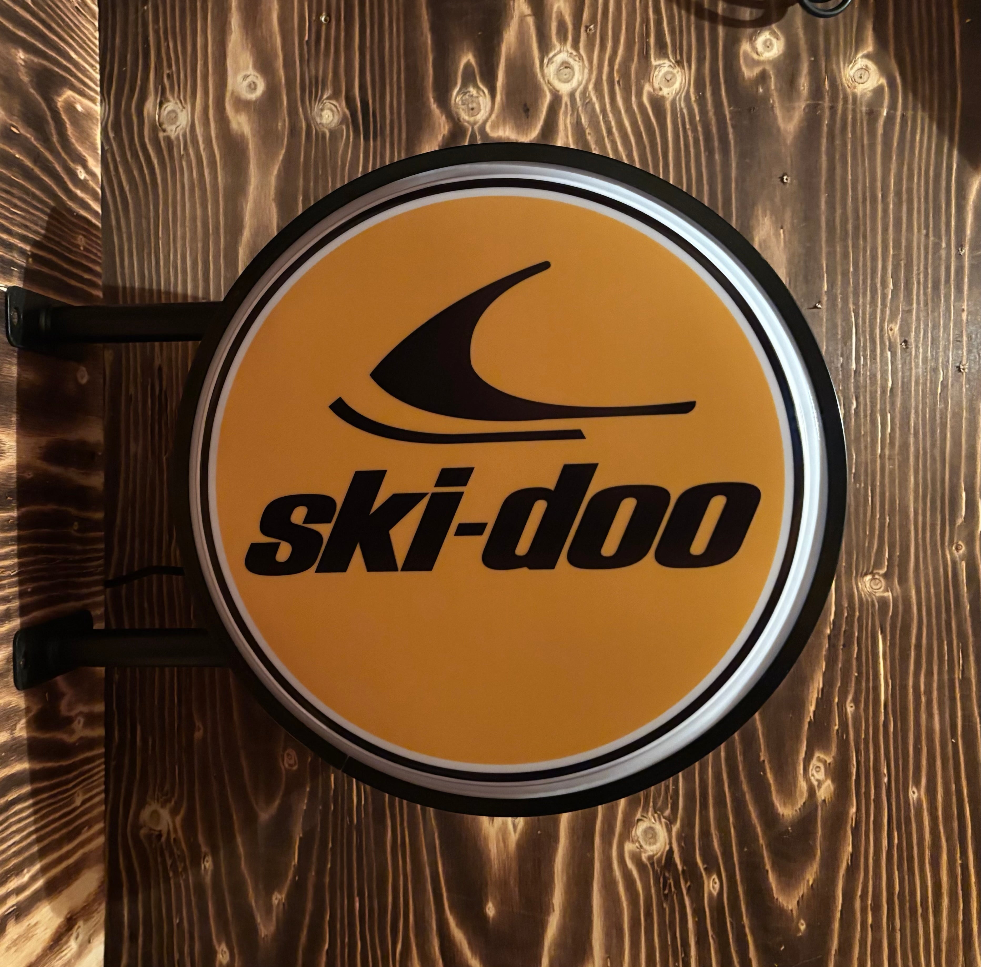 Set the mood and get the conversation started when you light up this fantastic Ski-Doo 20" two sided fixed flange sign! With its rugged metal frame and high intensity LED lighting, it stands out in any room especially outdoors where it seriously shines from all directions! Enjoy it as a wall mount or simply pivot the globes to create a unique and eye catching ceiling installation!